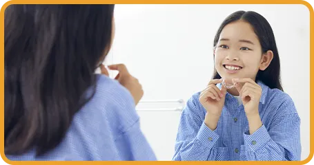 EFラインは透明の矯正装置で口腔周辺の筋肉を正しく機能させることで、歯並びを改善して方法です。お子様の小さい段階で始めることで、顎の骨の成長を活かせるので、歯を抜かずに矯正することができます。
